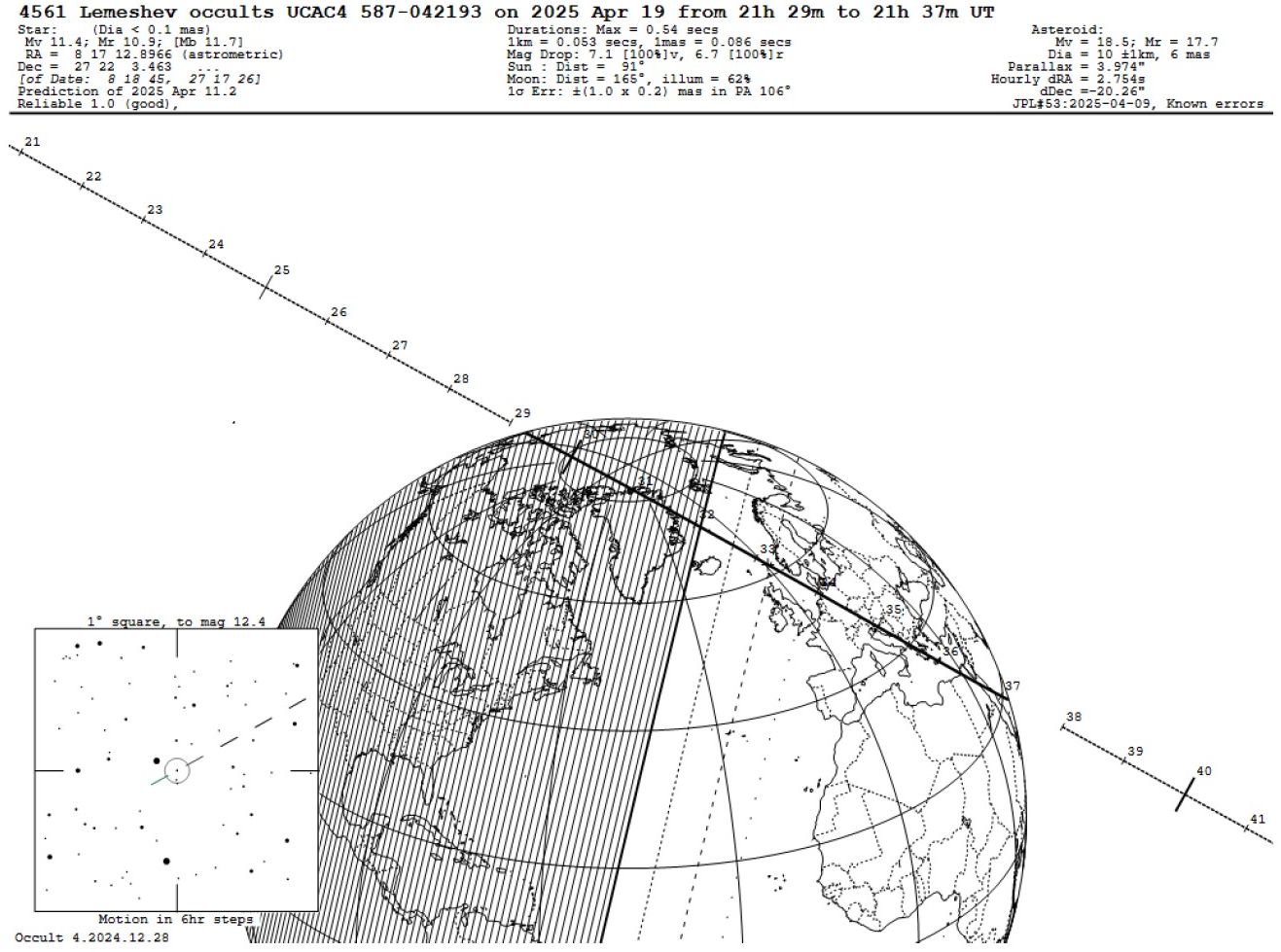 Vorhergesagter Helligkeitsabfall rund 7 mag, Bedeckungsdauer maximal (auf der Zentrallinie) 0,5 Sekunden.