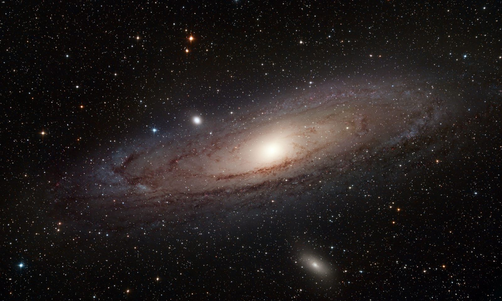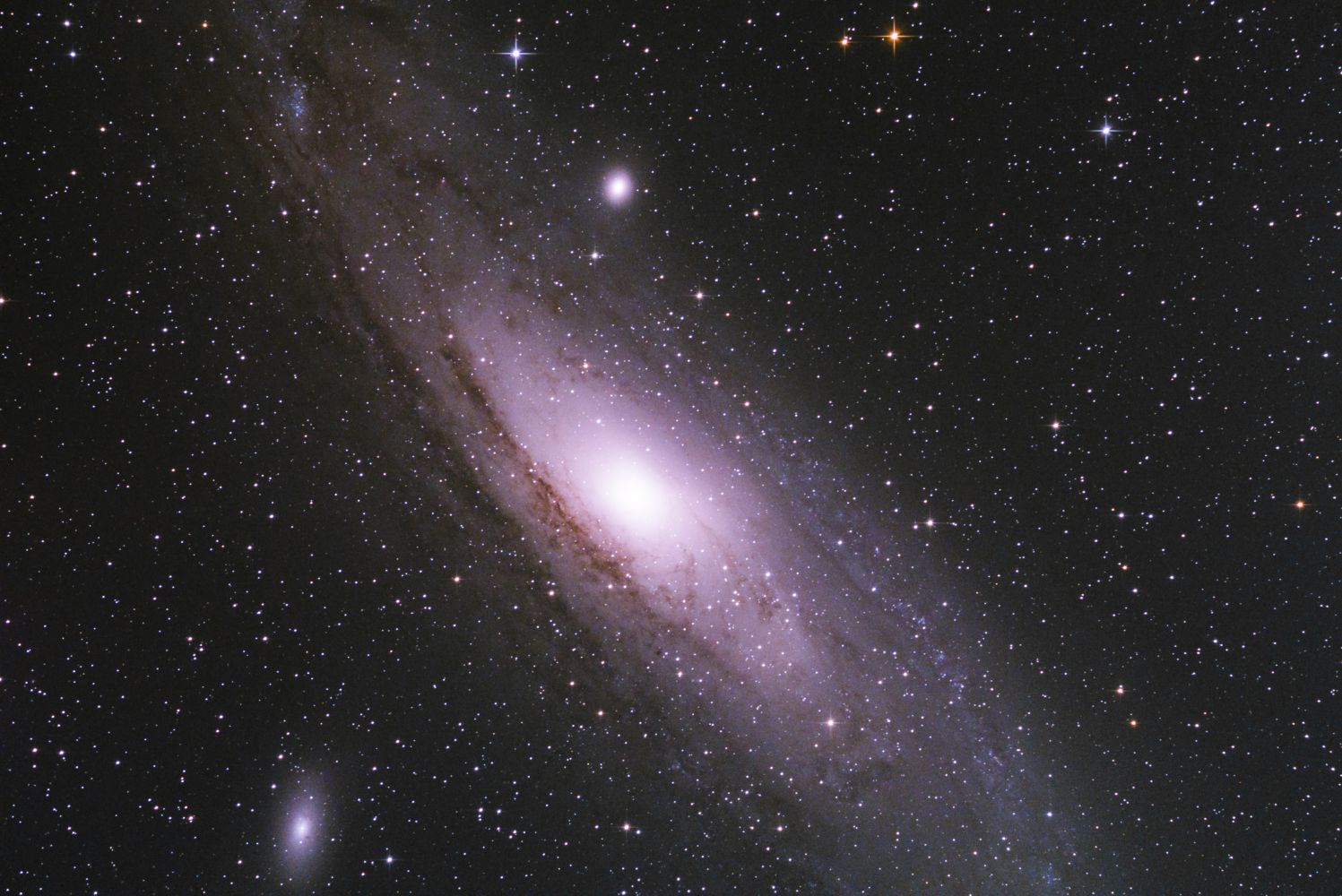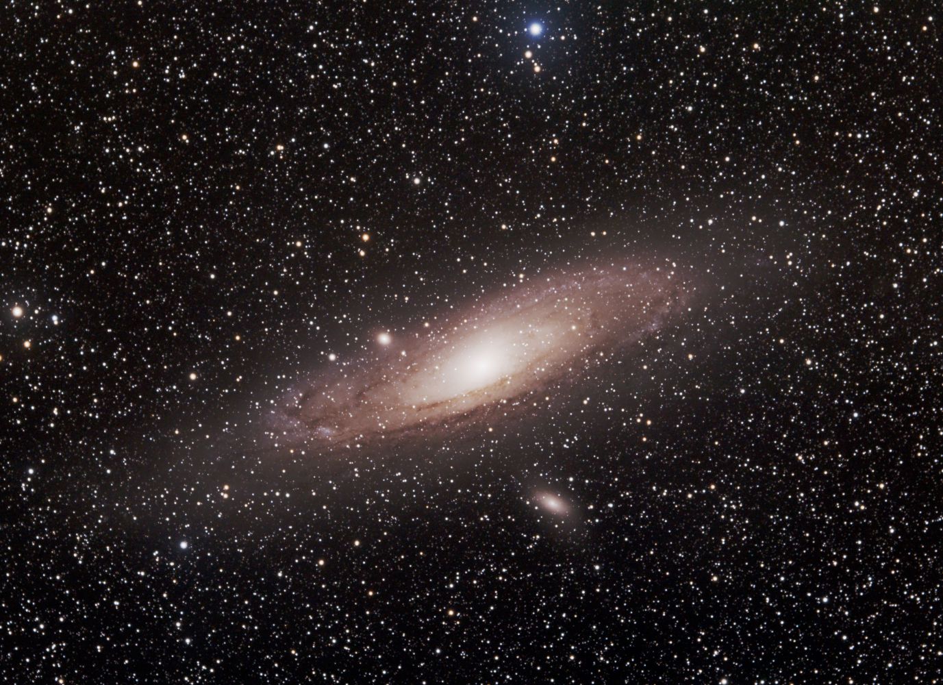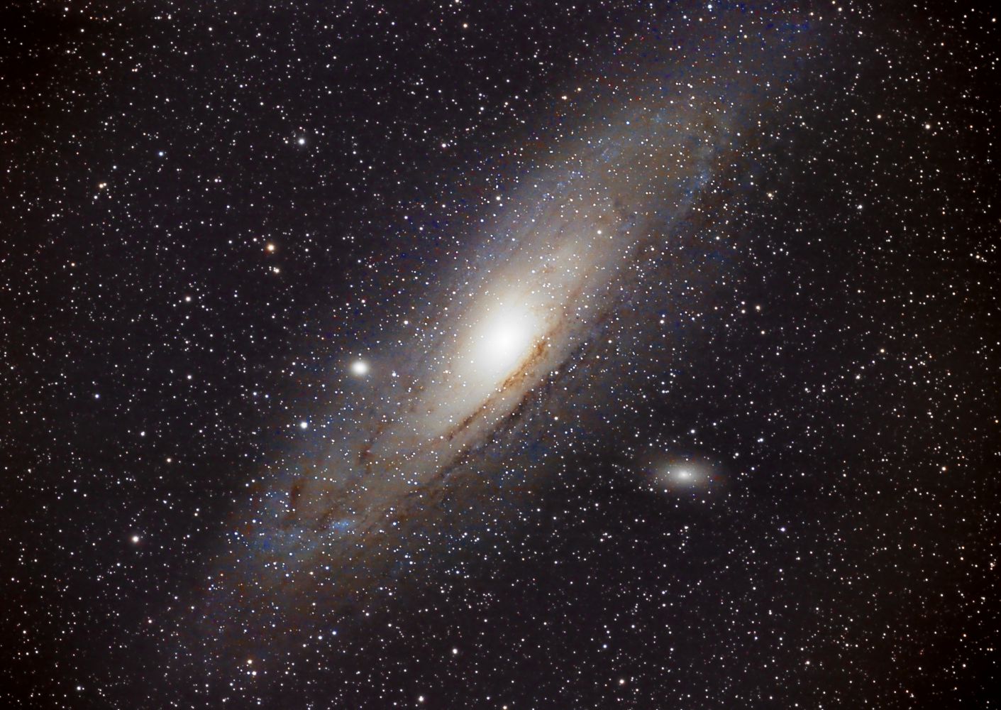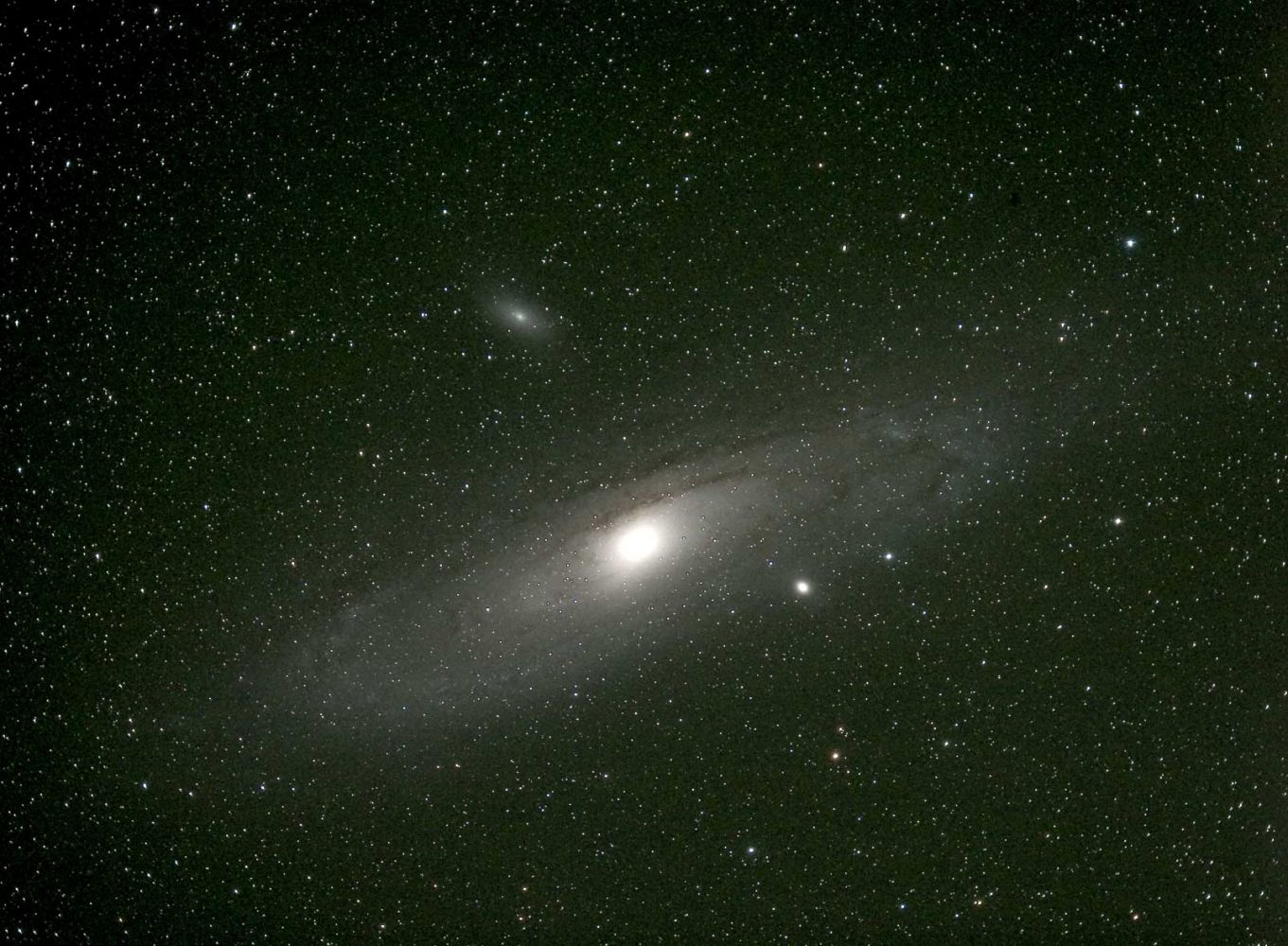 Infos: Die Andromeda-Galaxie oder Andromedanebel gehört zusammen mit der Milchstraße zur sog. Lokalen Gruppe. Zu ihr werden Objekte in der unmittelbaren Nachbarschaft der Milchstraße im Umkreis von fünf bis sieben Millionen Lichtjahren gezählt. Sie hat einen Durchmesser von ca. 200.000 Lichtjahren, ist also doppelt so groß wie die Milchstraße.