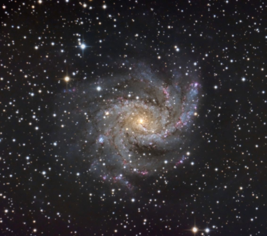 - Belichtungszeit 120MinutenDas Foto zeigt Messier 101, gerne auch Feuerrad-Galaxie (oder im Englischen pinwheel galaxy) genannt, welche im Sternbild Großer Bär liegt und ca. 21 Mio. Lichtjahre entfernt ist.