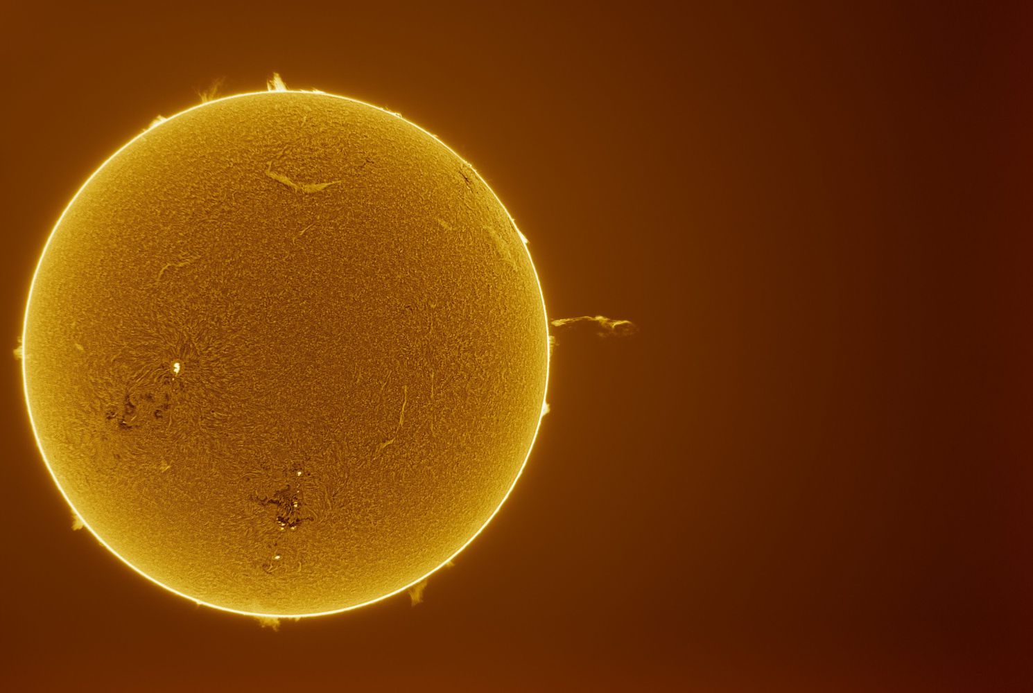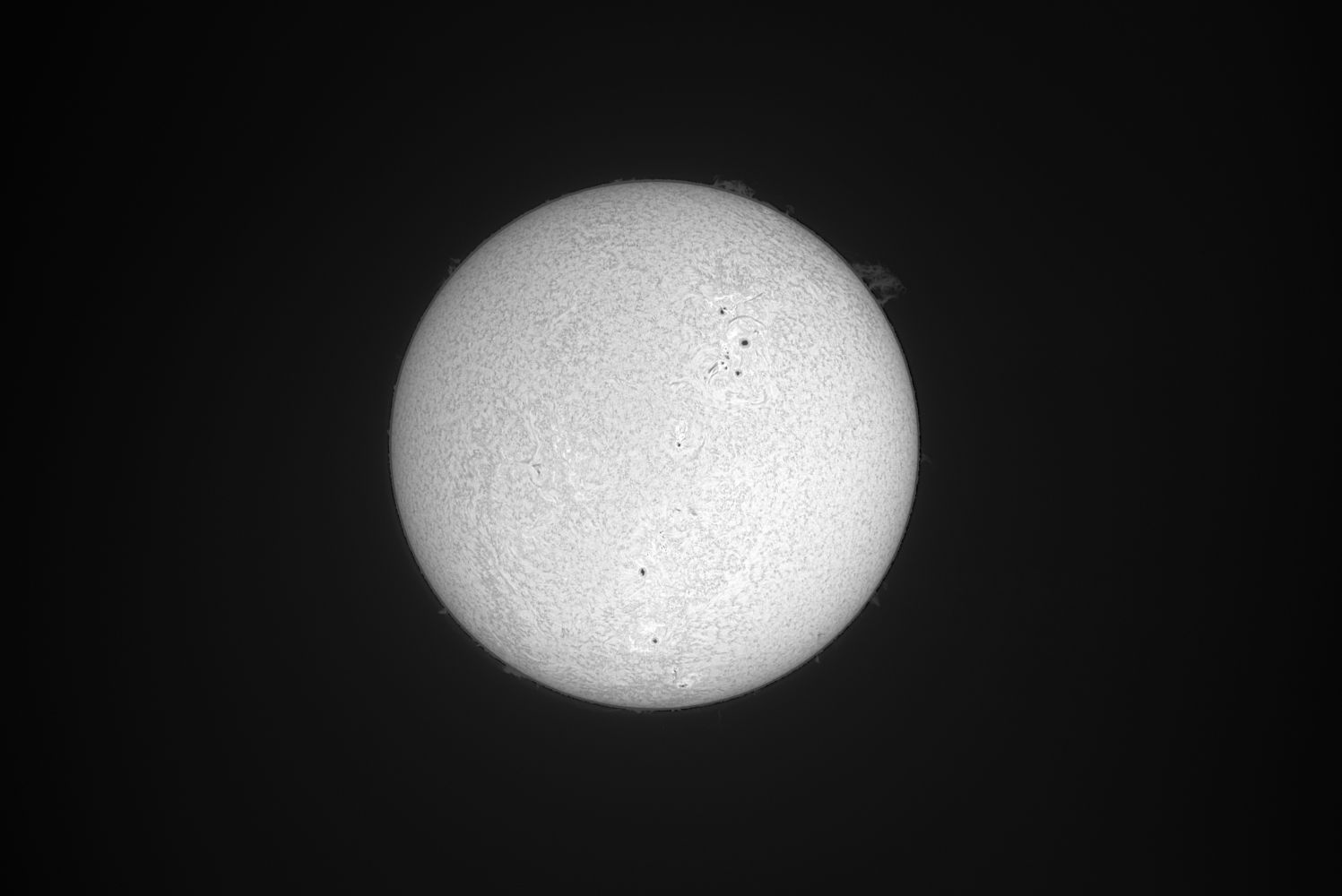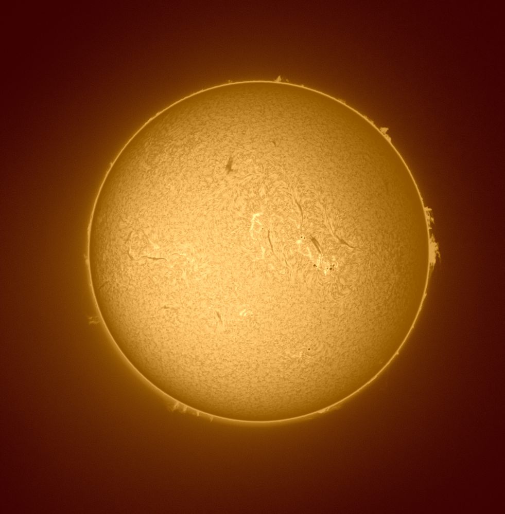 Sonne vom 28.07.2024, 17:20 Uhr mit dem 80er Lunt Sonnenteleskop des Vereins und einer Asi 183 Mono Kamera ( Ohne Barlow)