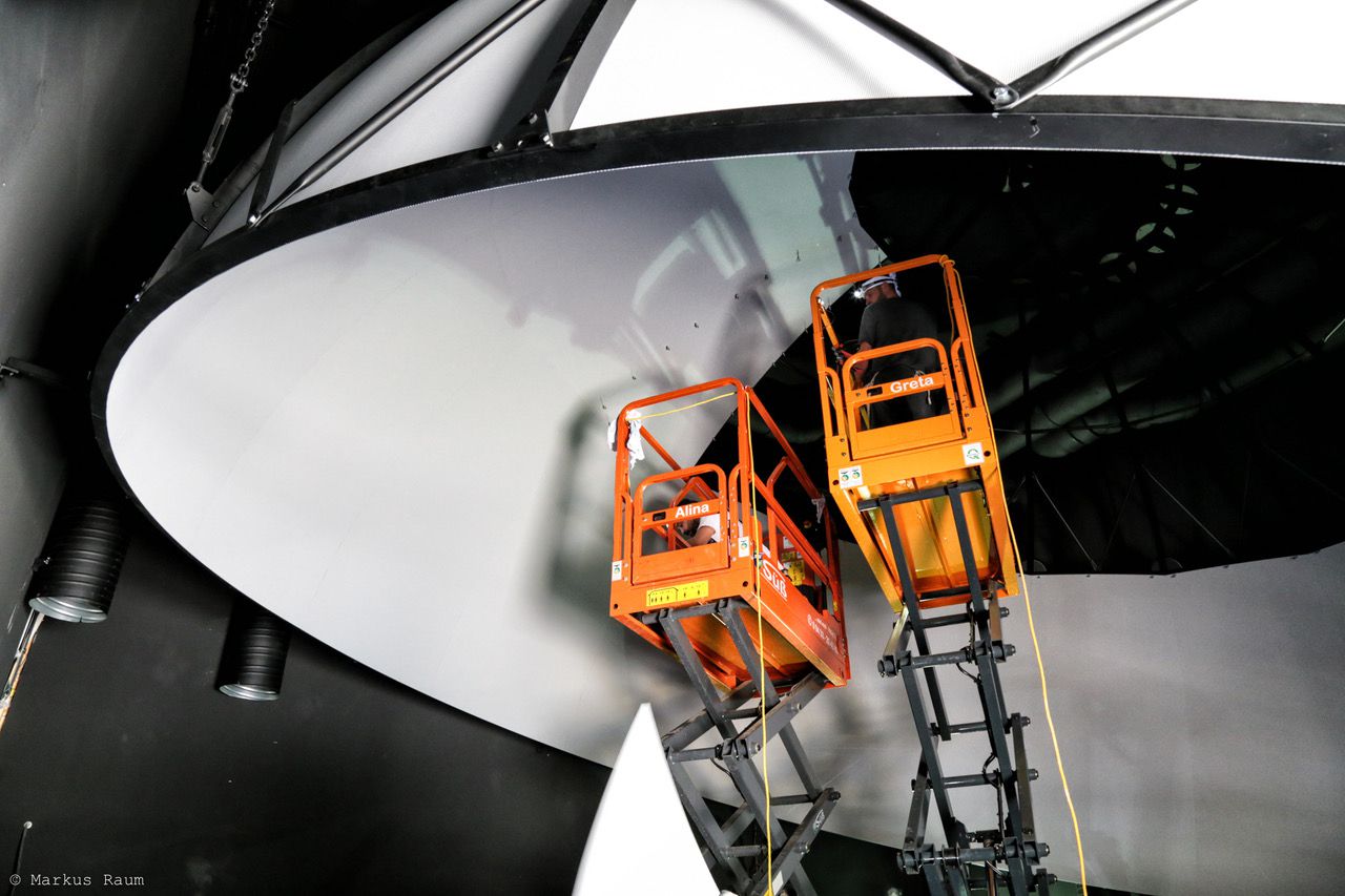 Lunt Sonnenteleskop mit Double-Stack H-alpha Filter der Sternwarte Ursensollen. Oberflächenkontrast invertiert.