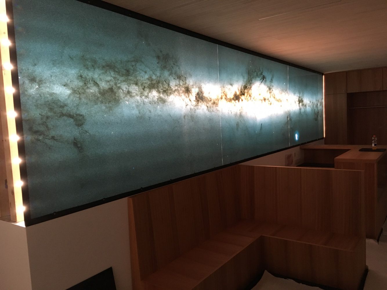 Die Cygnus Wall ist ein Teil des Nordamerikanebels NGC 7000 im Sternbild Schwan. Dieser ist ca 2000-3000 LJ entfernt und besteht zum größten Teil aus Wasserstoff- deswegen erscheint der Nebel auf Fotografien rötlich. Auf diesem Bild wurden die Fahrben in der sog. Hubble Palette als Falschfarbenbild dargestellt.