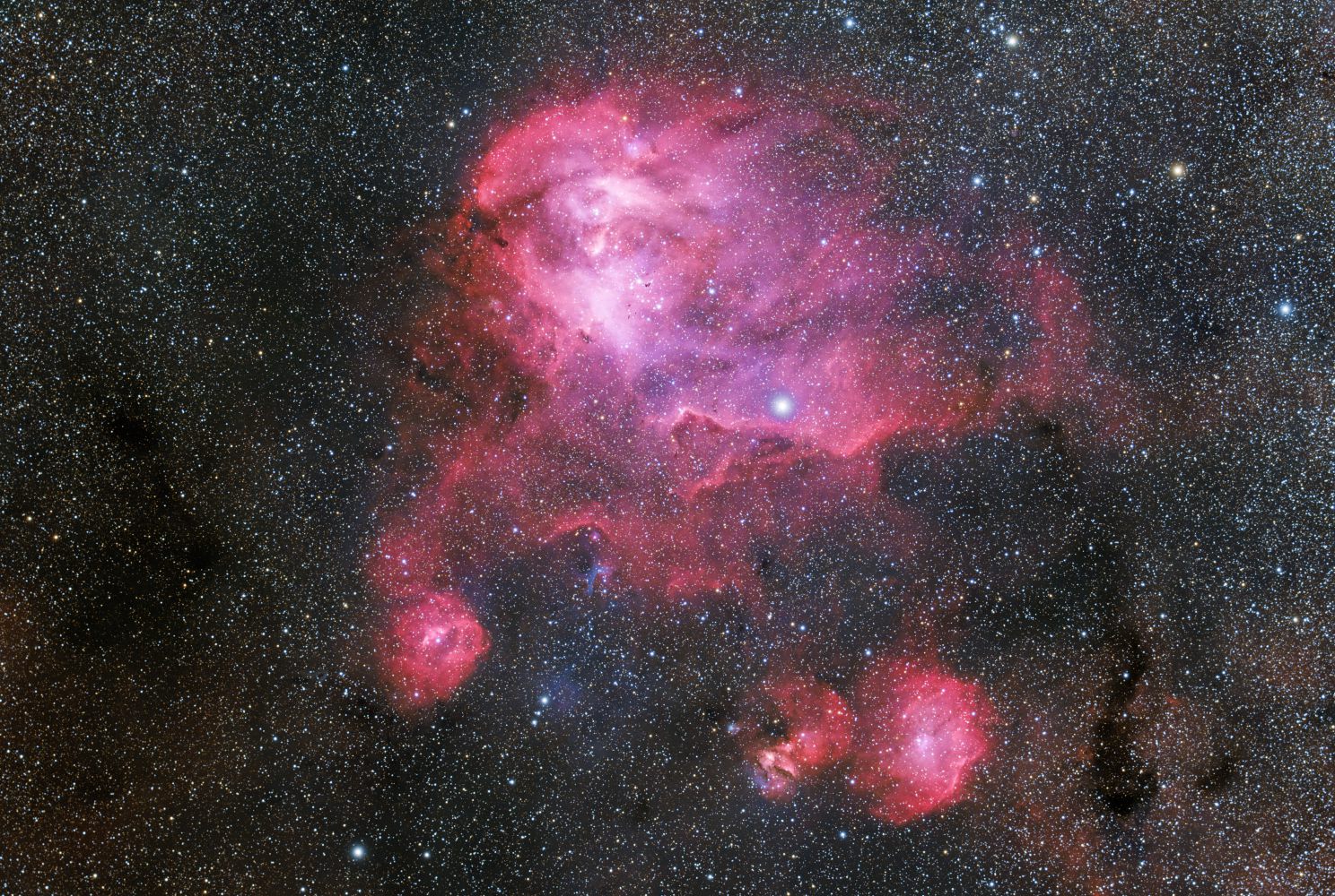 Der Adlernebel M16 liegt mitten in der Milchstraße im Sternbild Schlange. Dieser ist ein Emissionsnebel aus dem sich ein offener Sternhaufen bildet. Der ca 20 LJ große Nebel enthält Staubsäulen die ca 9.5 LJ lang sind. An deren Spitzen befinden sich neue Sterne weswegen sie auch die Säulen der Schöpfung genannt werden.