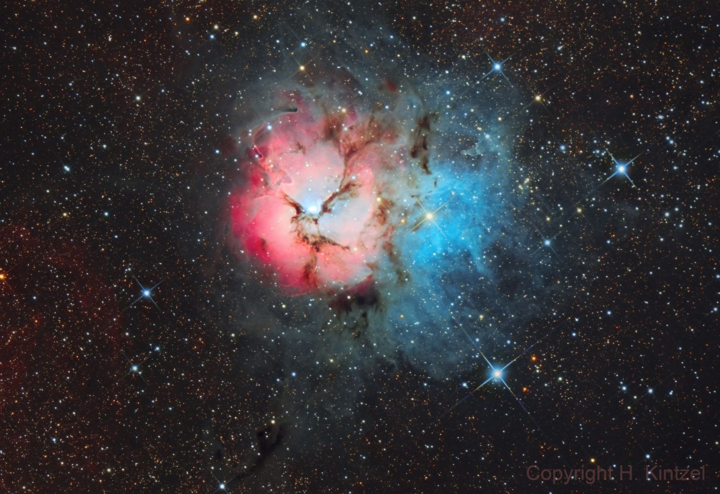 Die Cygnus Wall ist ein Teil des Nordamerikanebels NGC 7000 im Sternbild Schwan. Dieser ist ca 2000-3000 LJ entfernt und besteht zum größten Teil aus Wasserstoff- deswegen erscheint der Nebel auf Fotografien rötlich. Auf diesem Bild wurden die Fahrben in der sog. Hubble Palette als Falschfarbenbild dargestellt.