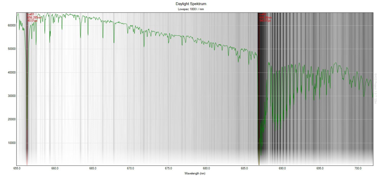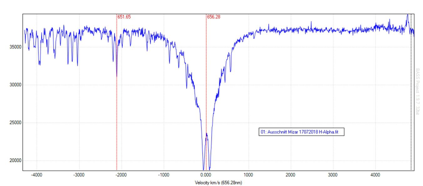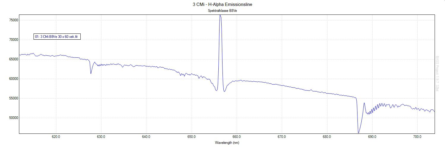 Spektralklasse B8Ve H-Alpha-Emissionslinie bei 656,2852 nm