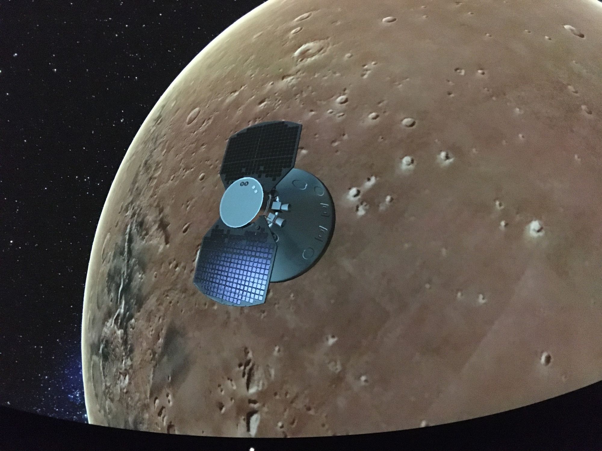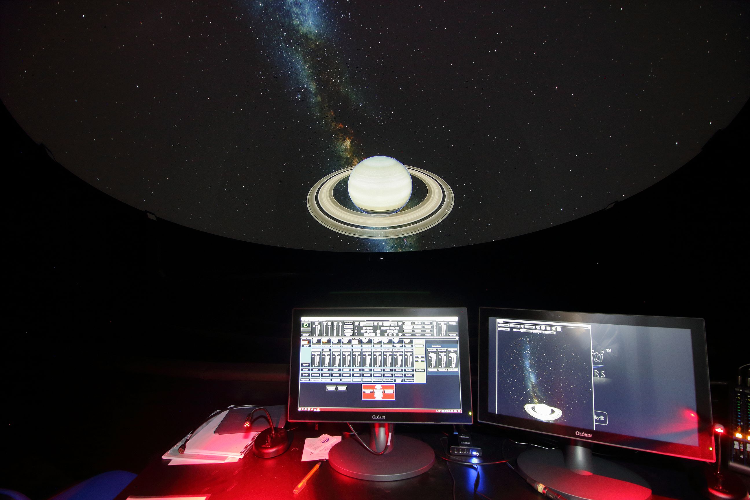 Das mit einer um 15 Grad geneigten und perforierten 6,6 m Kuppel aus Aluminium ausgestattete Planetarium bietet Platz für 30 Besucher.