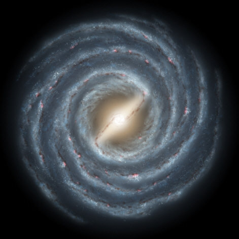 Die Milchstraße ist eine flache Scheibe mit einem Durchmesser von etwa 100.000 Lichtjahren und einer Dicke von ungefähr 16.000 bis 30.000 Lichtjahren (je weiter außen, desto dünner). Sie gehört zur Gruppe der Balken-Spiralgalaxien. Man nimmt etwa 100 Milliarden Sterne an, die zum Teil im sehr massereichen Kern, zum Teil in den masseärmeren Spiralarmen um das Zentrum rotieren.